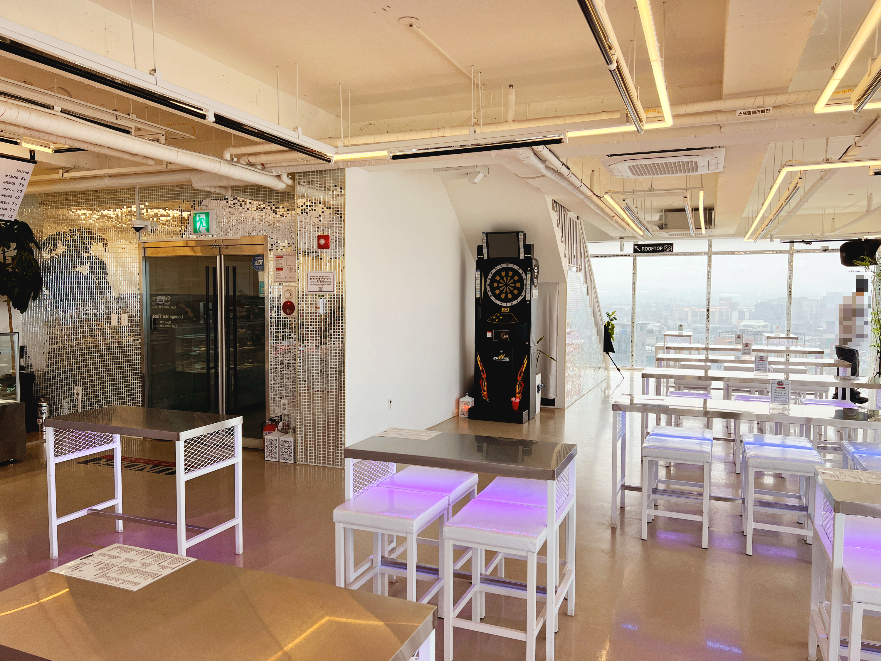 중간에 다트기기도 있었고, 3면이 유리로 되어있고 높은 층의 매장이다 보니 개방감이 정말 끝내줬어요!