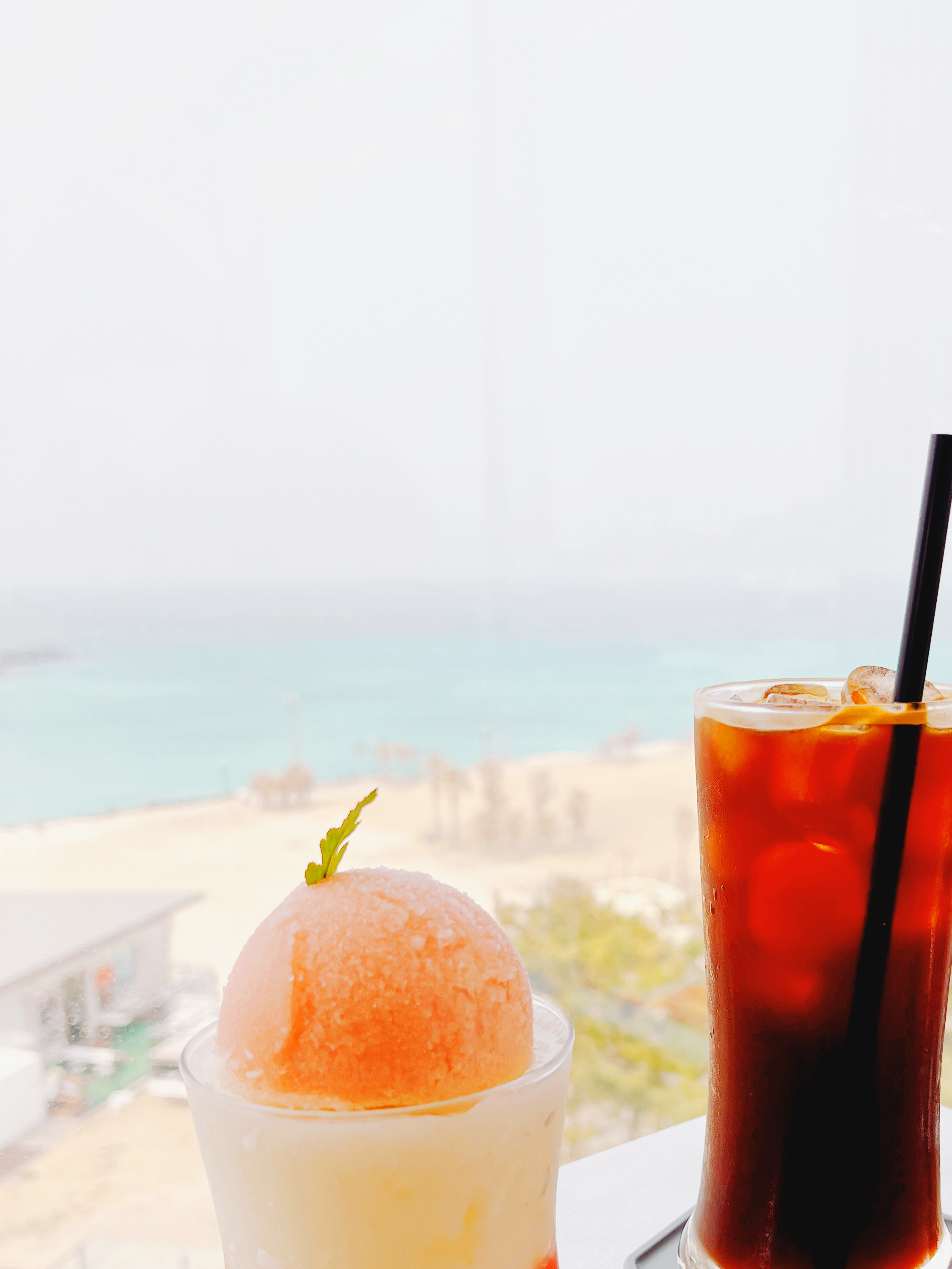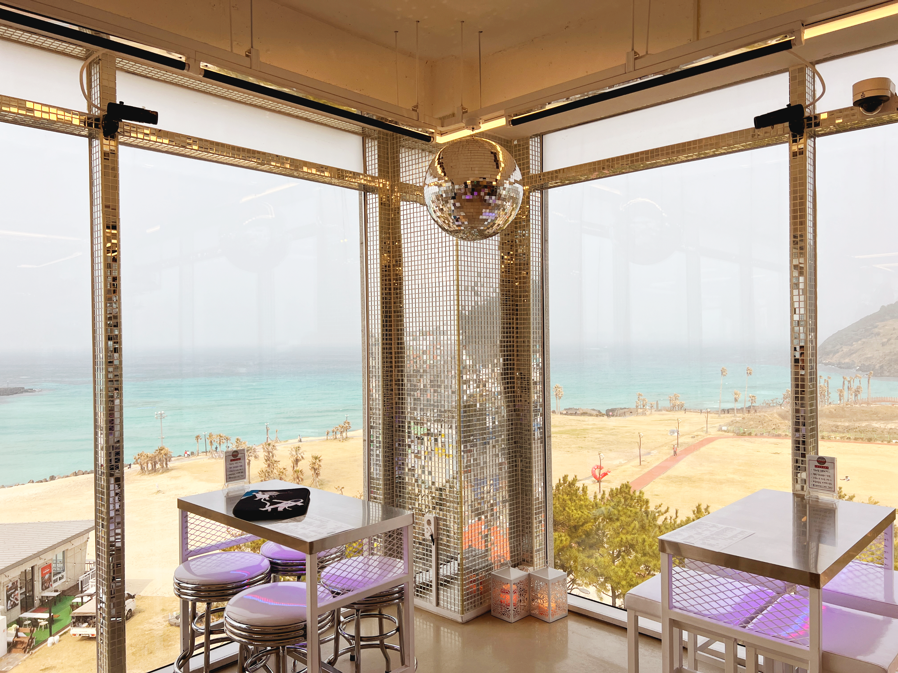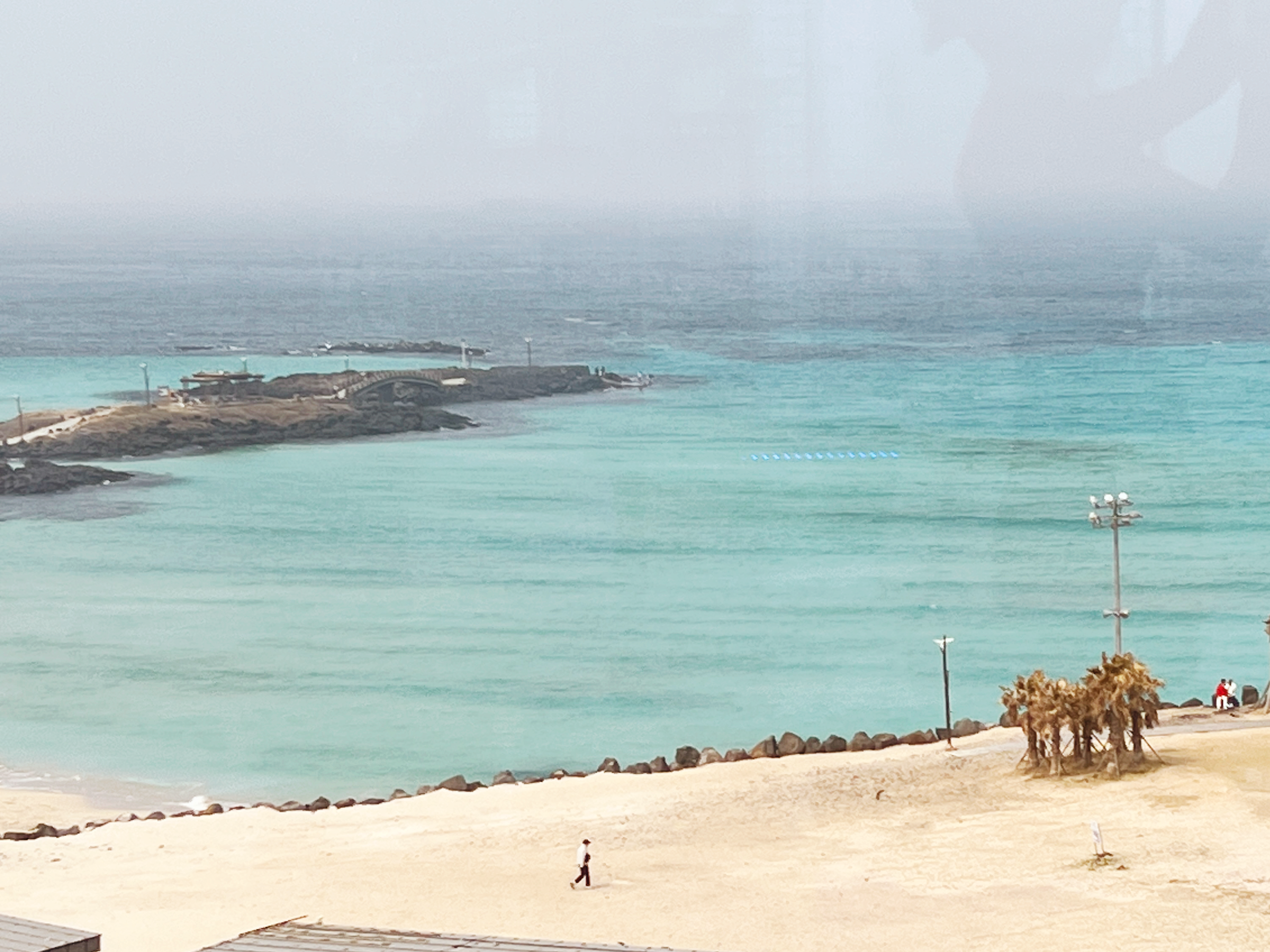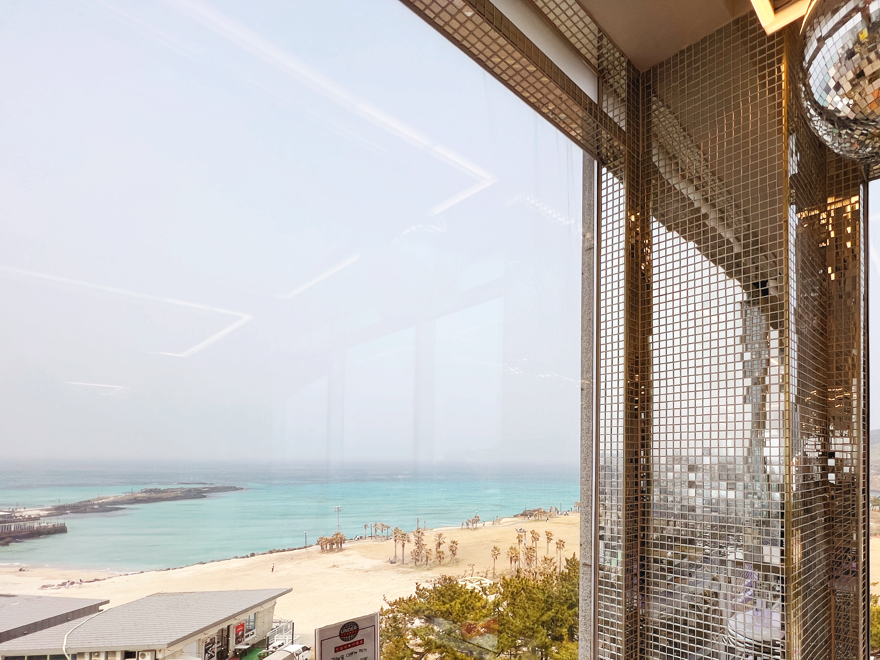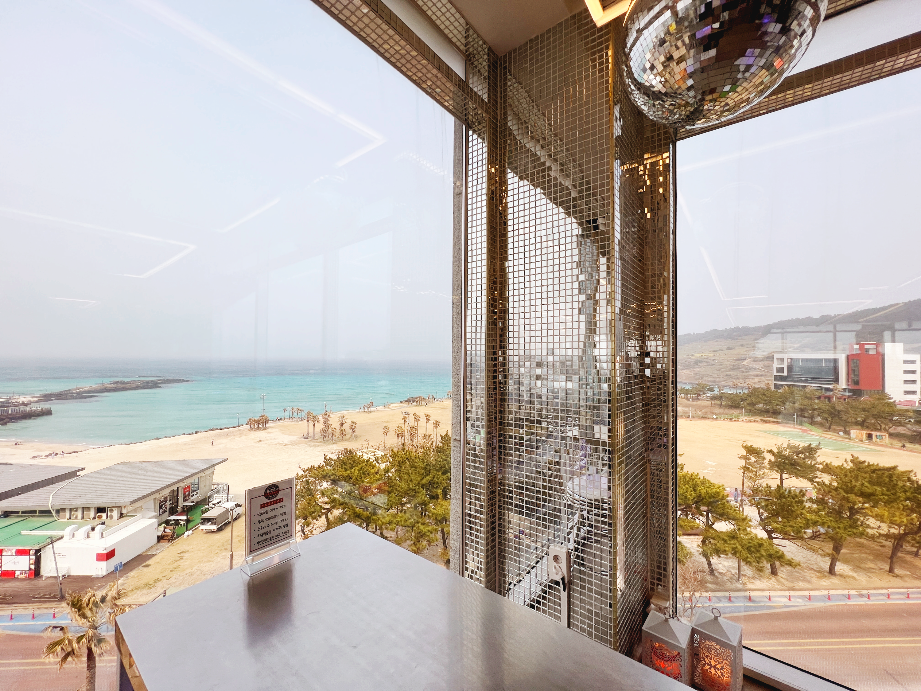 밖에 모래바람이 많아서 조금 뿌옇게 보이긴 하지만, 높은 곳에서 바라보는 함덕해수욕장의 시원한 개방감이