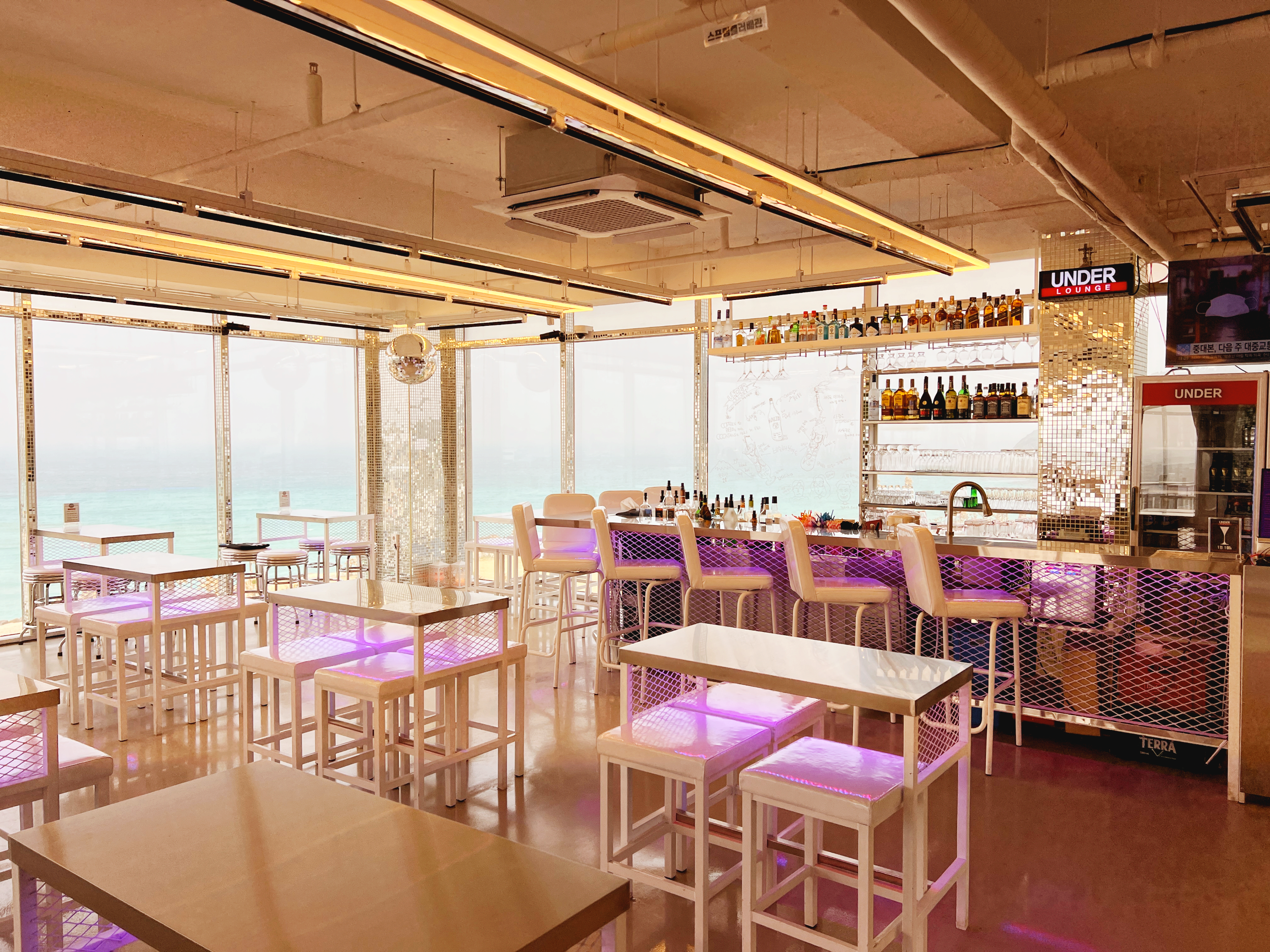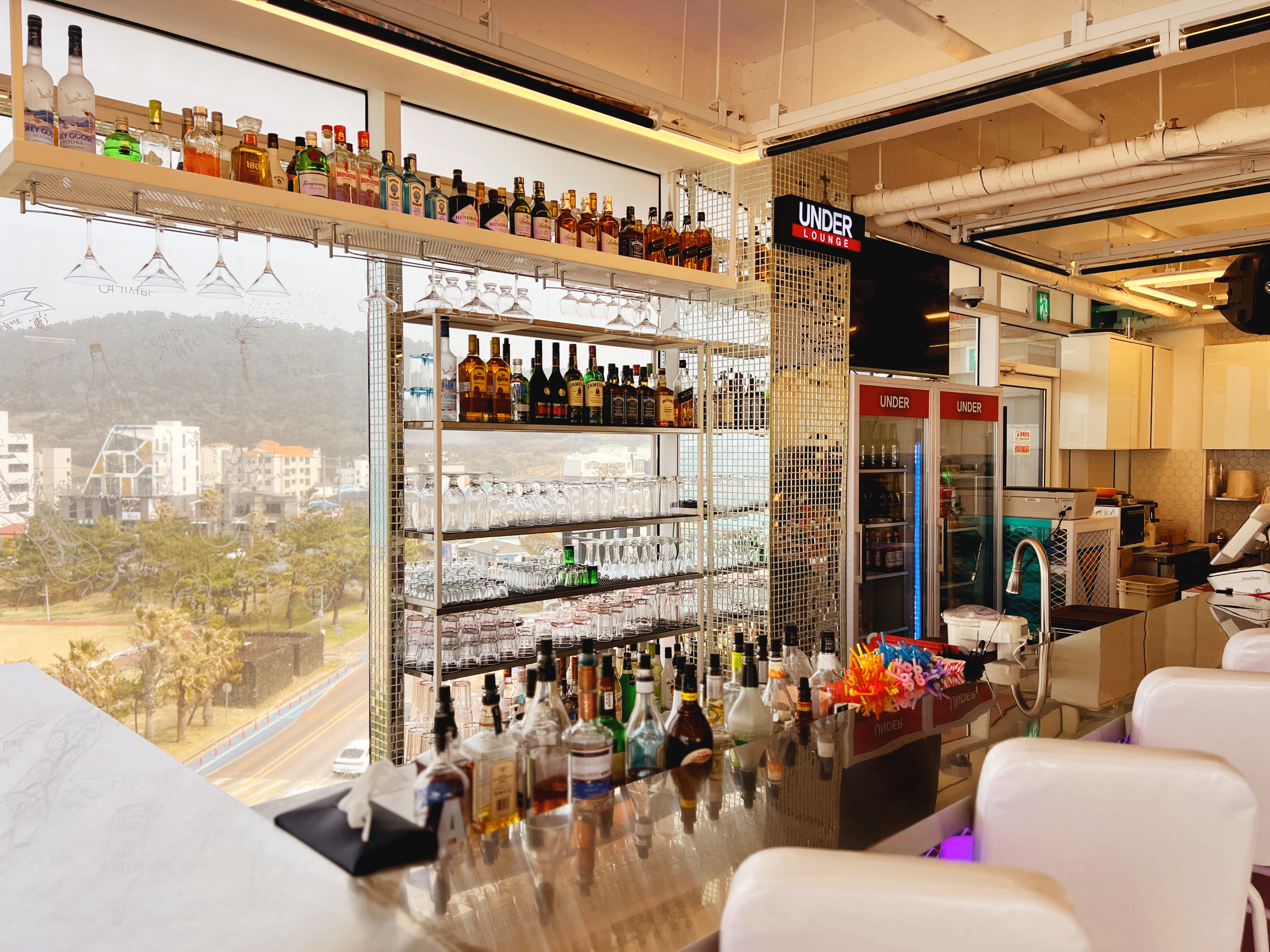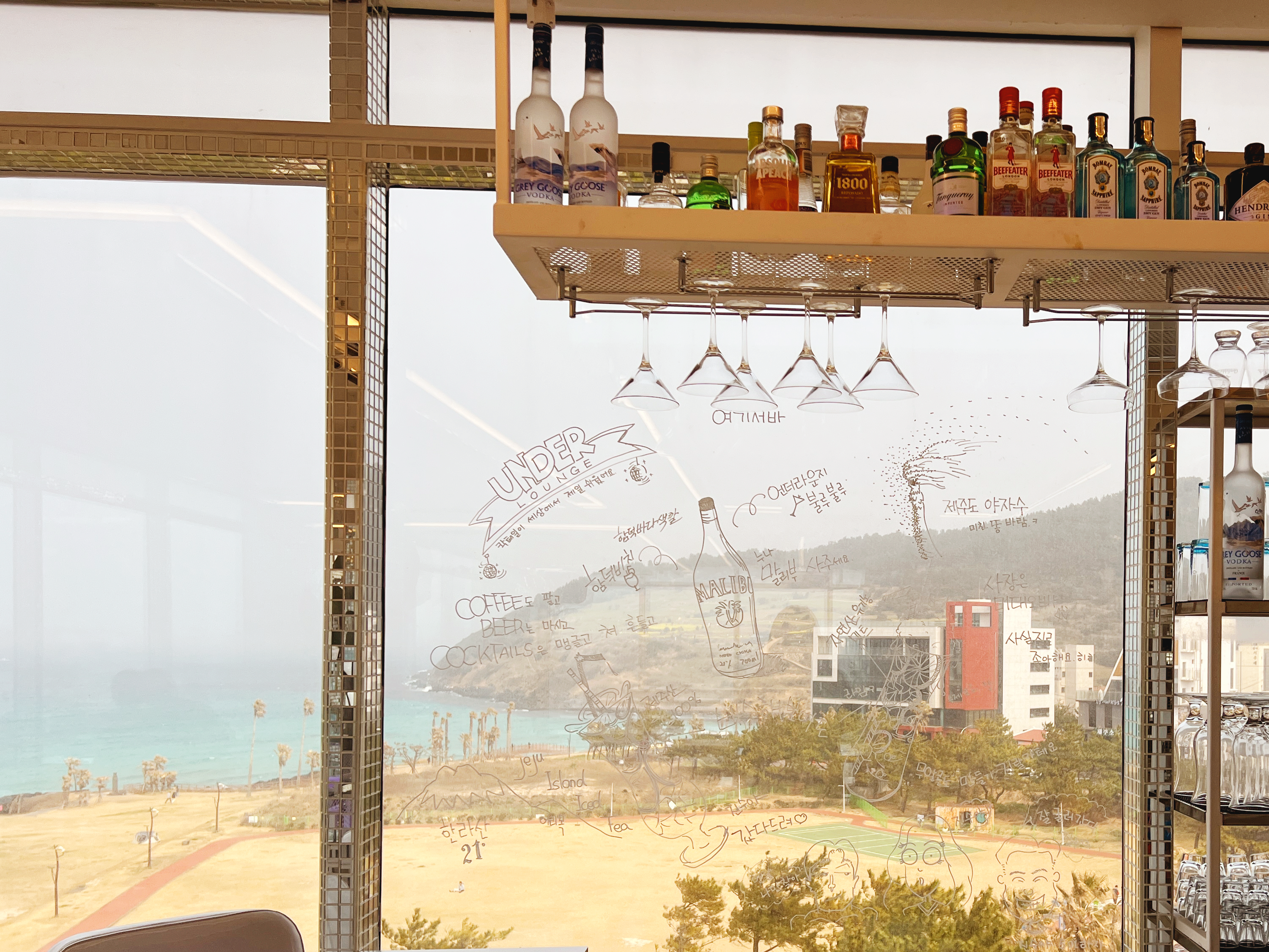 마침, 함덕해수욕장을 내려다 볼 수 있는 '언더라운지' 카페 겸 칵테일 바가 있어서