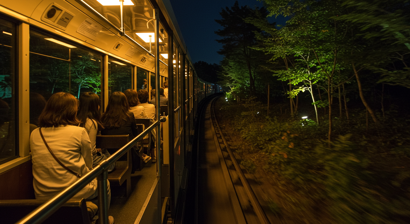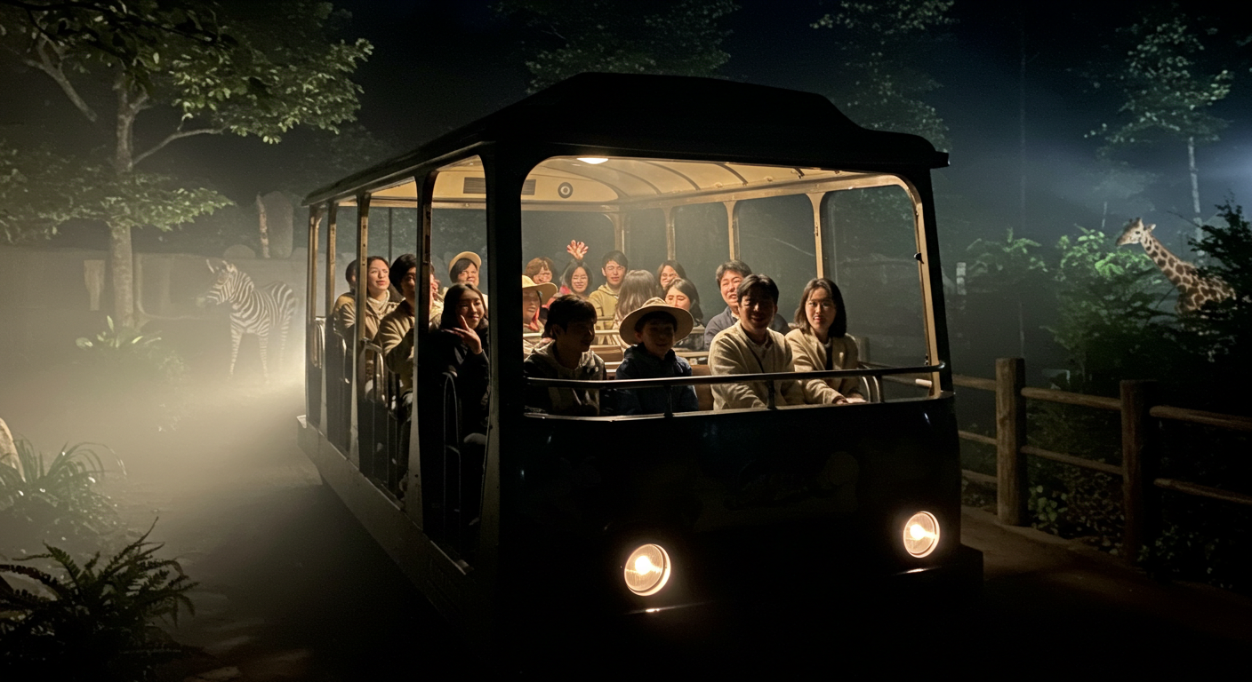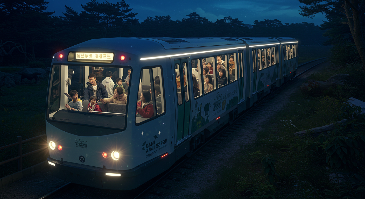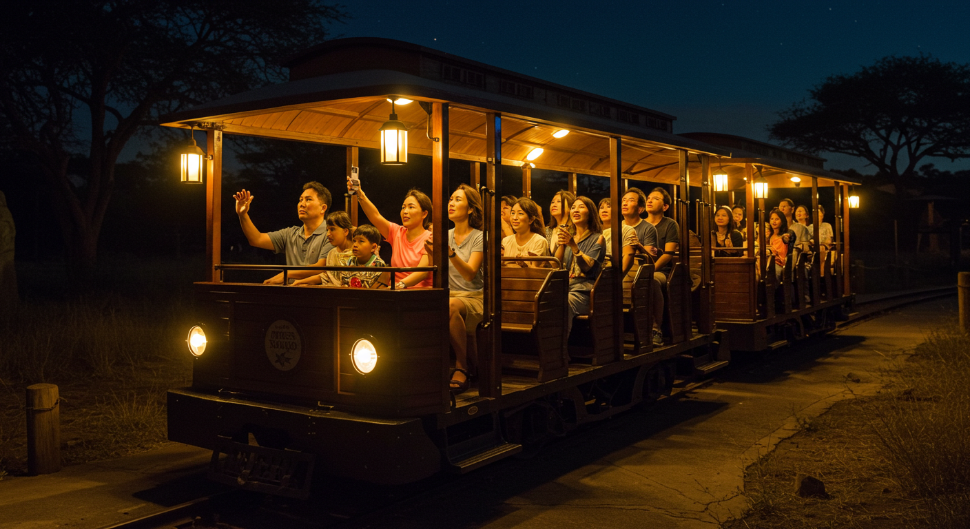 아래 이미지는 이해를 돕기위해 AI로 생성한 이미지입니다. 실제 운영되는 나이트 사파리 트램과는 무관합니다.