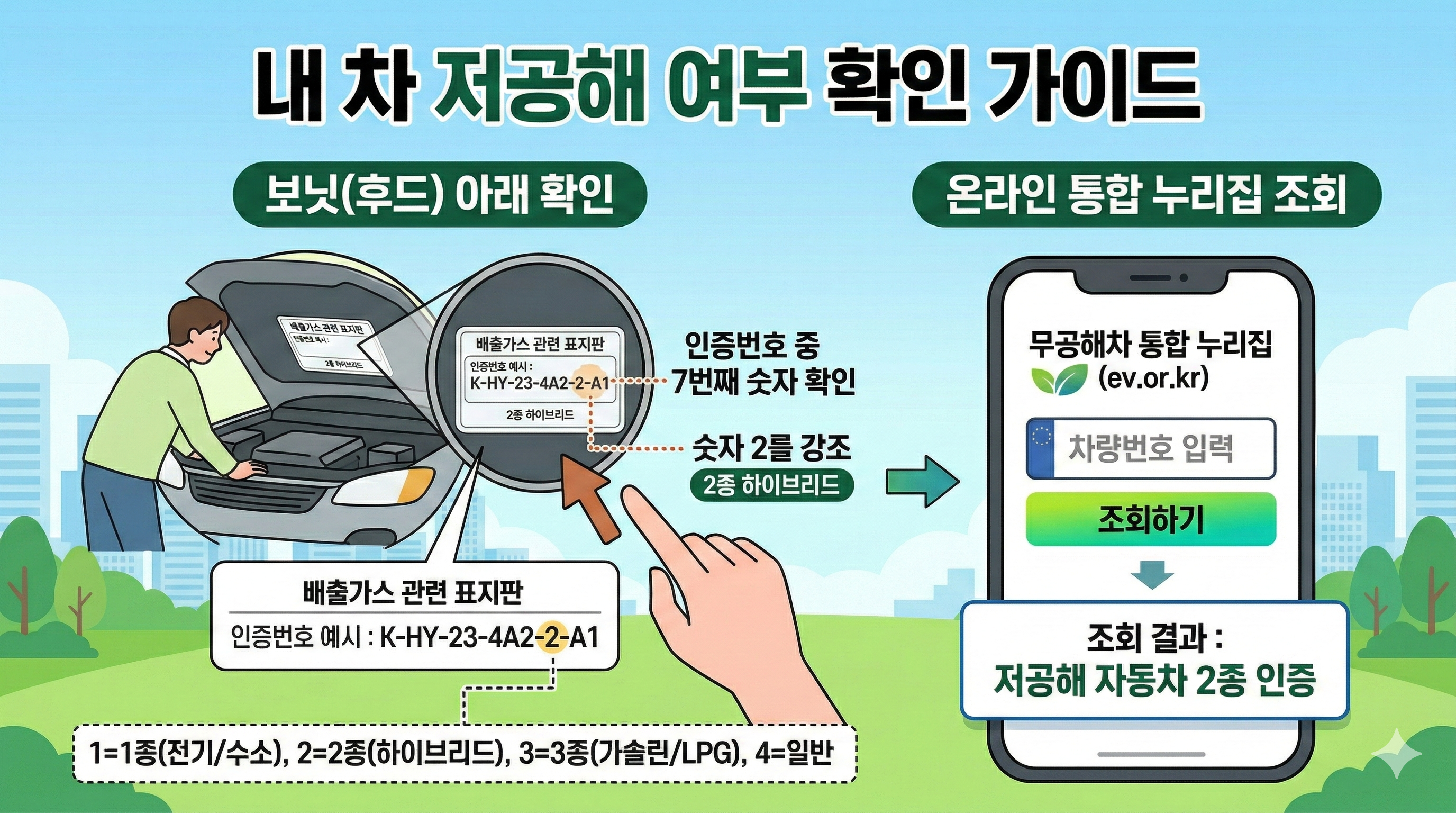 ※ 주의: 경차라고 무조건 저공해차는 아니며, 대형 세단이라도 기준만 충족하면 3종이 될 수 있습니다.