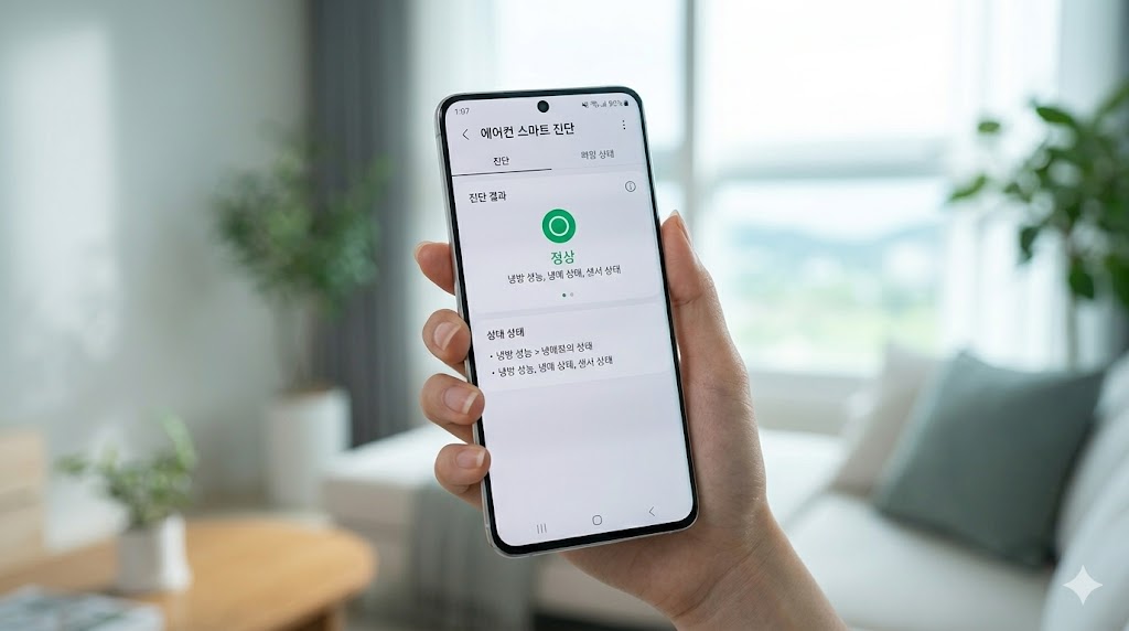- 스마트 진단: 앱에서 '스마트 진단' 버튼 하나만 누르면 AI가 압축기, 센서, 모터의 이상 유무를 스스로 파악합니다.