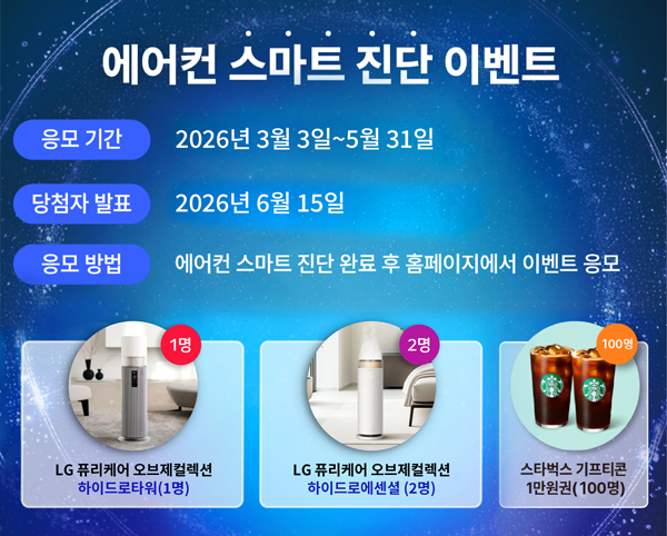 지금 바로 'LG전자 에어컨 사전점검 서비스'를 신청하세요. 3월 31일까지만 제공되는 출장비 0원 혜택으로 우리 집 에어컨 컨디션을 미리 챙길 수 있는 골든타임입니다.